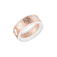 Anello I Divini composto da una fascia rastremata con gambo in oro bianco e fascia a vista in oro rosa, cuori traforati, sagoma bimbo in oro bianco e pavé di diamanti.
