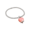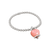 Bracciale elastico con campanella media in argento, resina sfaccettata a mano color quarzo rosa e un diamante taglio brillante.