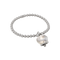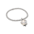 Bracciale elastico con campanella media in argento, resina sfaccettata a mano color cristallo di rocca e un diamante taglio brillante.