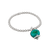 Bracciale elastico con ciondolo campanella medio con resina sfaccettata a mano color verde Paraiba su argento e un diamante taglio brillante