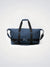 Perfetta per chi viaggia leggero, questa borsa unisce un design essenziale e contemporaneo a un tessuto in poliuretano blu con manici e tracolla nere a contrasto.