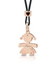 Anello I Divini composto da una fascia rastremata con gambo in oro bianco e fascia a vista in oro rosa, cuori traforati, sagoma bimbo in oro bianco e pavé di diamanti.