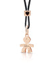 Ciondolo I Diamantini sagoma bimbo in oro rosa con cuore in oro bianco in pavè di diamanti corredato di cordino nero.