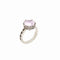 Anello Elizabeth realizzato in argento 925 brunito. L'anello presenta un castone con intreccio di cuori Maman che accoglie l'Ametista lavanda di 1 cm di diametro. L'anello presenta degli intarsi anche lungo il gambo. L'anello è disponibile nelle misure IT 13 (circonferenza interna: 53 mm, diametro interno: 16,8 mm) e IT 16 (circonferenza interna: 56 mm, diametro interno: 17,83 mm).