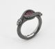 anello Nove 25 in argento brunito e pietra rossa