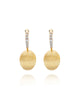 Gli orecchini Ciliegine, in oro 18kt inciso a mano, accolgono cristallo di rocca e madreperla in un abbraccio armonioso, celebrando l’eleganza senza tempo e la bellezza della materia.